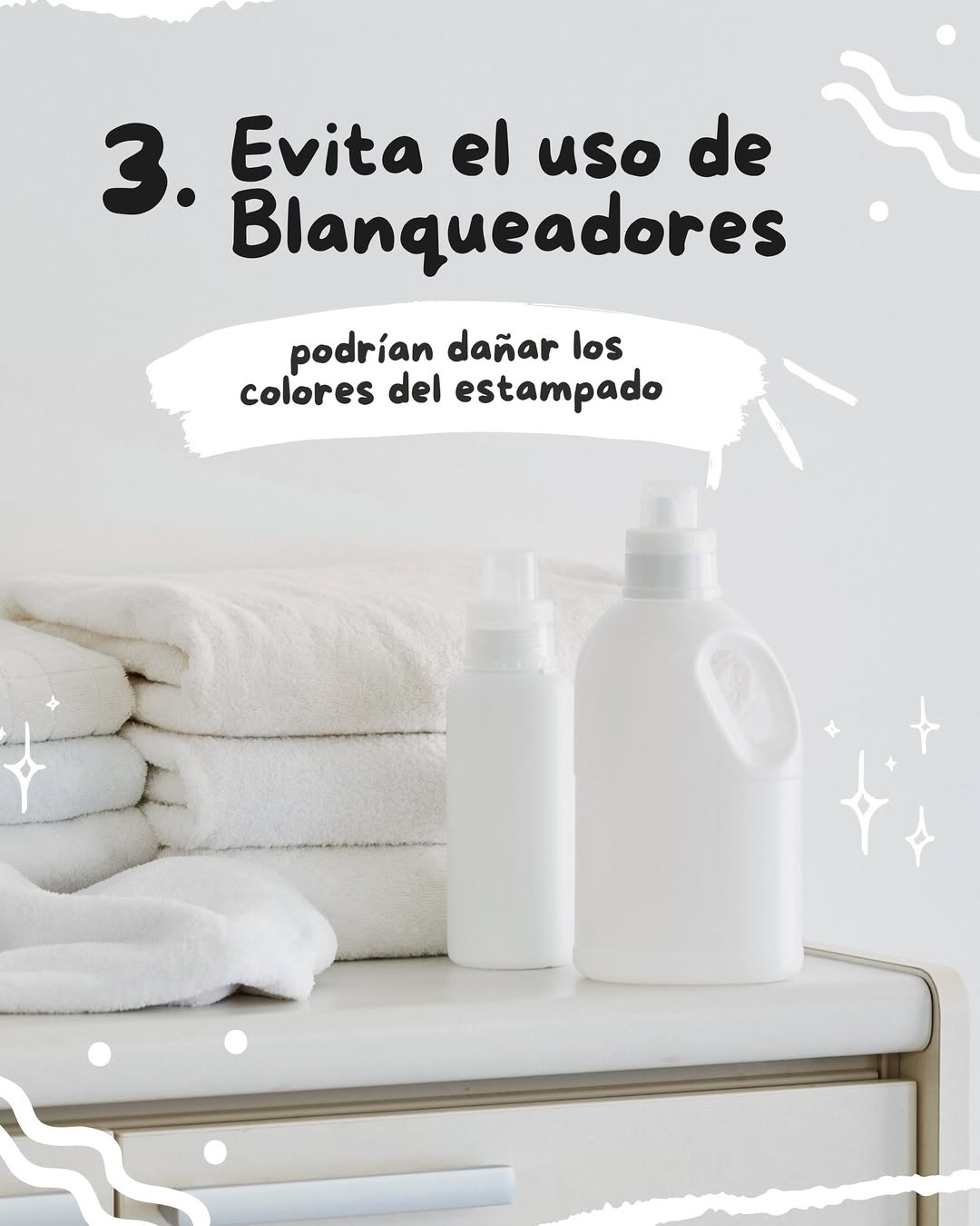 No usar cloro ni productos abrasivos, ya que pueden degradar los colores.